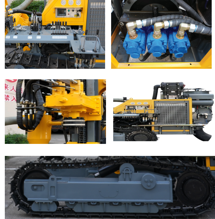配置进口高效液压泵,进口液压胶管并且液压阀通径都做了增大设计,液压系统整体性能提升显著,独立双速行走操纵系统视野好,操纵安全,一体式仪表实时监控钻车运行状态。