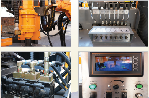 钻车的行走、推进、回转、集尘及角度调整等动作均采用液压驱动,爬坡能力强,性能稳定;