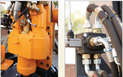 钻车的行走、推进、回转、集尘及角度调整等动作均采用液压驱动,爬坡能力强,性能稳定;