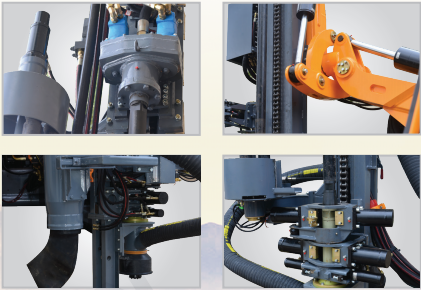 配有自动接卸杆系统、钻杆浮动滑杆模块、钻杆润滑模块、防卡钻系统、液压干式集尘系统、冷暖空调驾驶室等,并选配钻孔角度及深度指示功能;