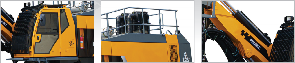 配备钻杆润滑系统、干式集尘系统、钻杆螺纹保护、钻孔角度及深度显示,自动接卸杆器减轻劳动强度、空调驾驶室提供舒适的工作环境及自动控制防卡阀少卡钻机率;