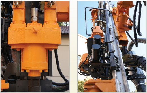 钻车的行走、推进、回转、集尘及角度调整等动作均采用液压驱动,爬坡能力强,性能稳定;